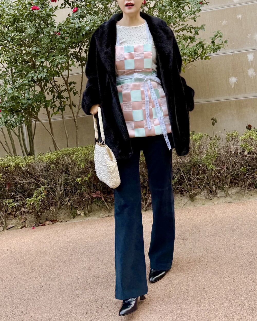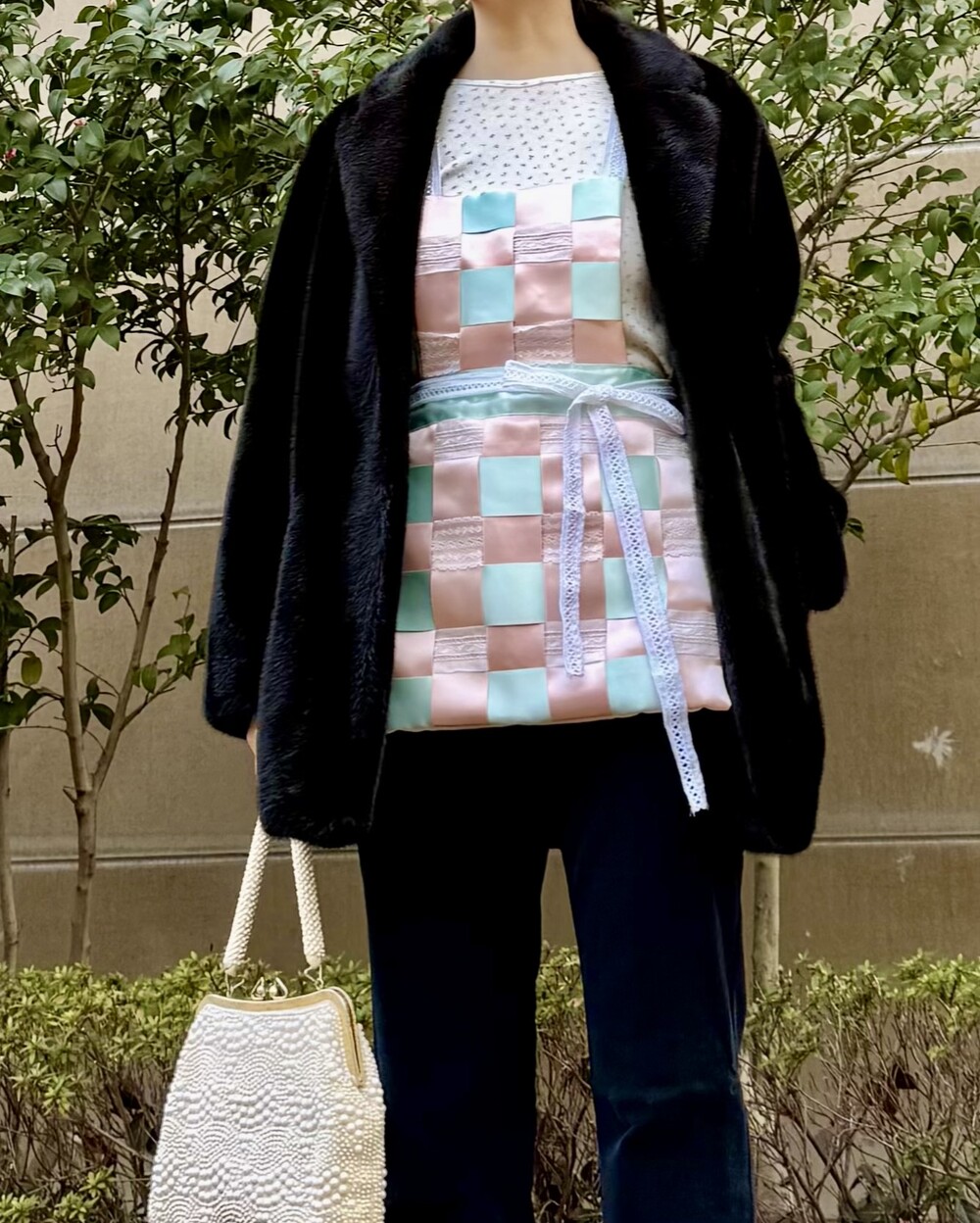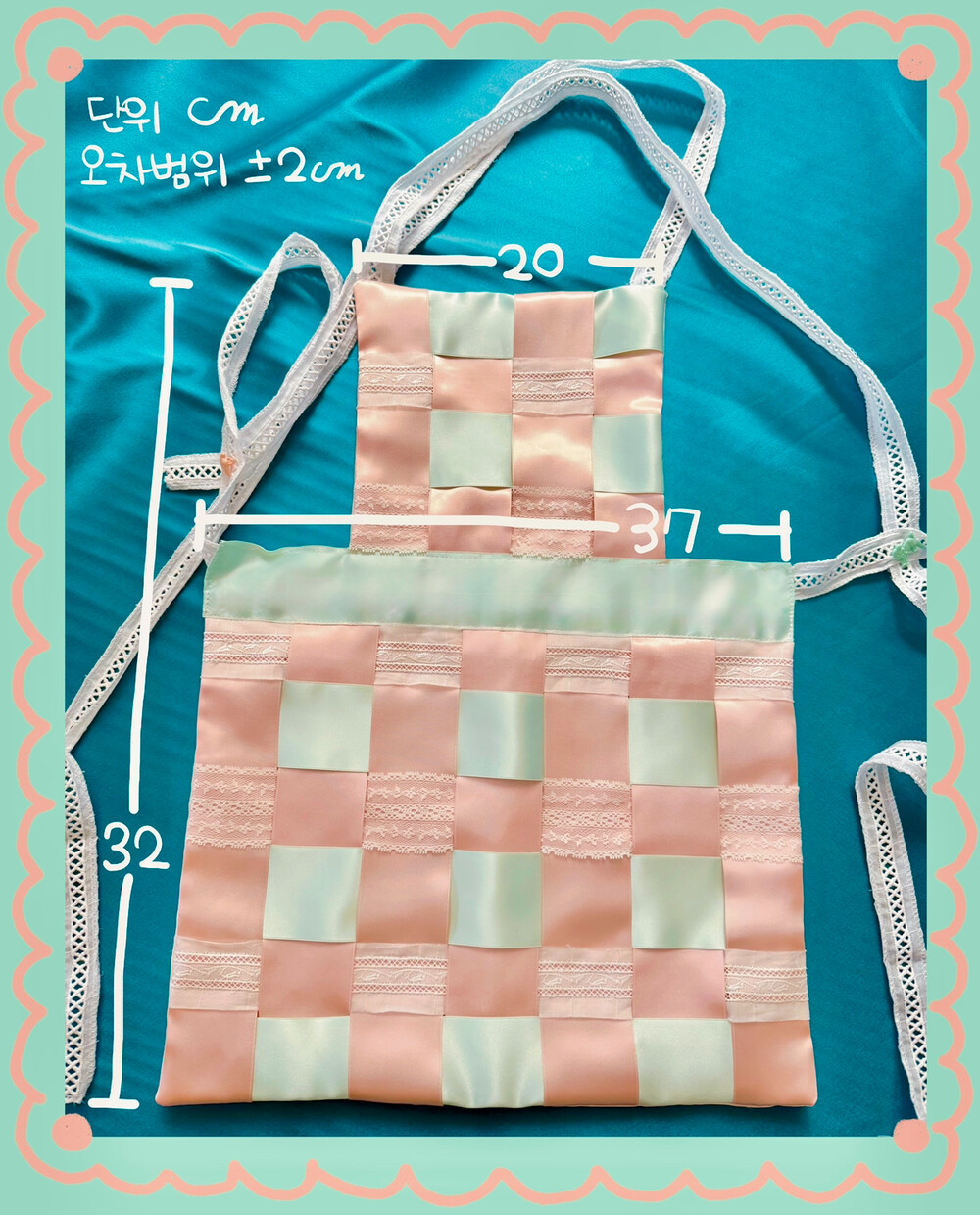 테두리 전체를 고정하지않고 교차되는 한 칸씩 스티치를 숨겨넣어 엮어져있는 입체감을 재미있게 풀어내었습니다